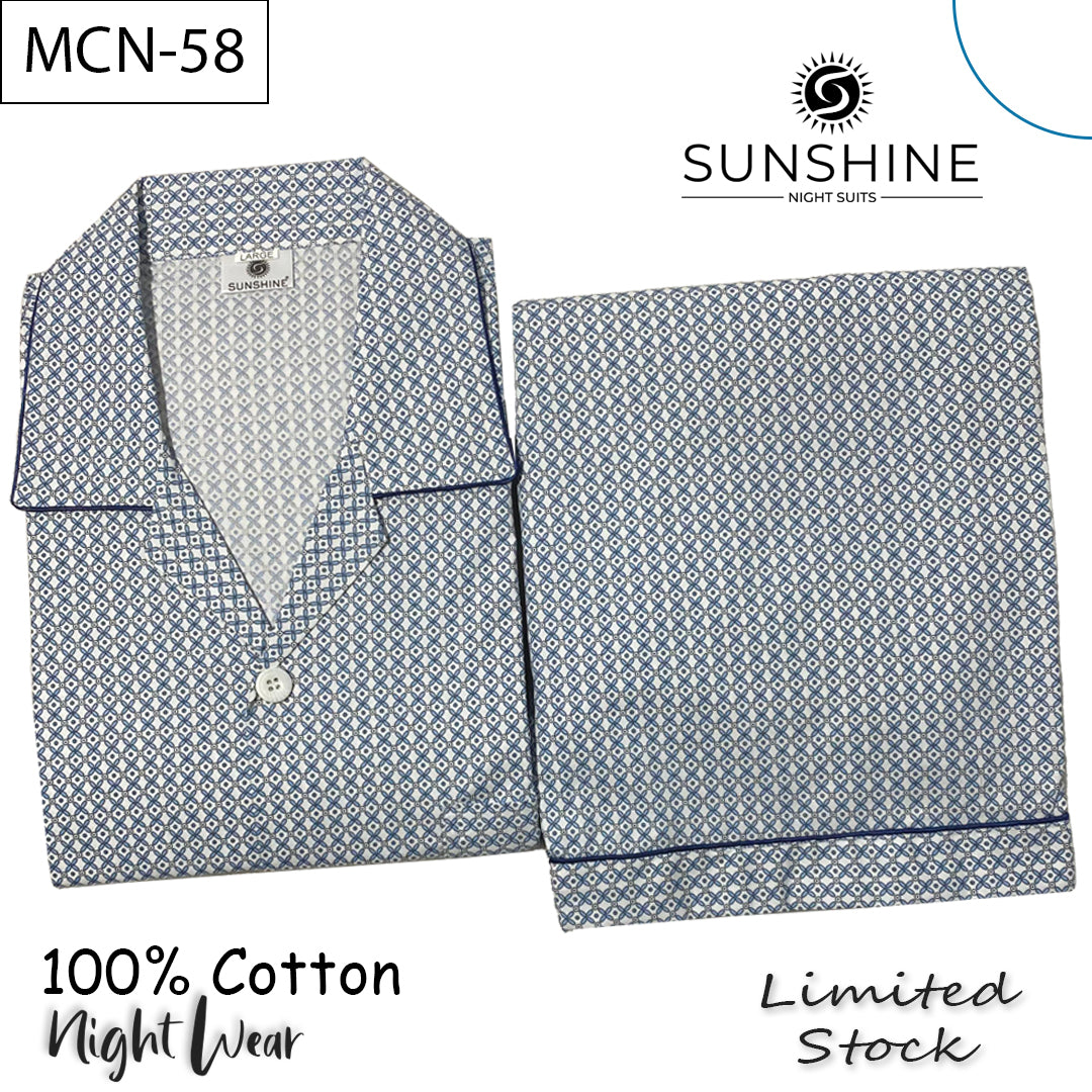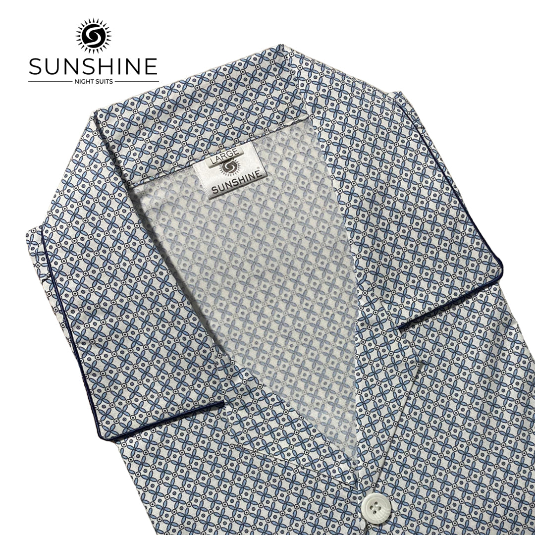 Blue White Geometric Printed 100% Cotton Night Suit – MCN-58