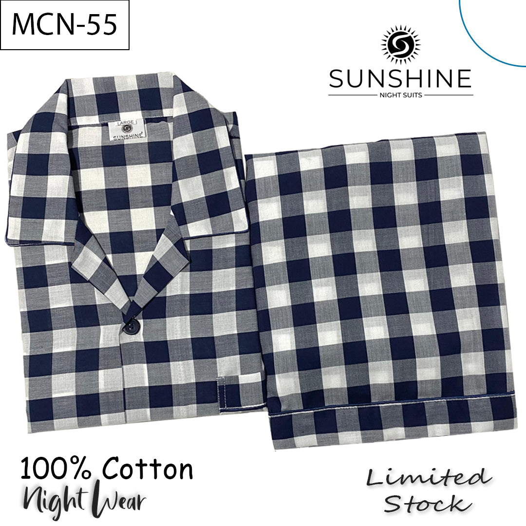 Blue White Gingham Check 100% Cotton Night Suit – MCN-55