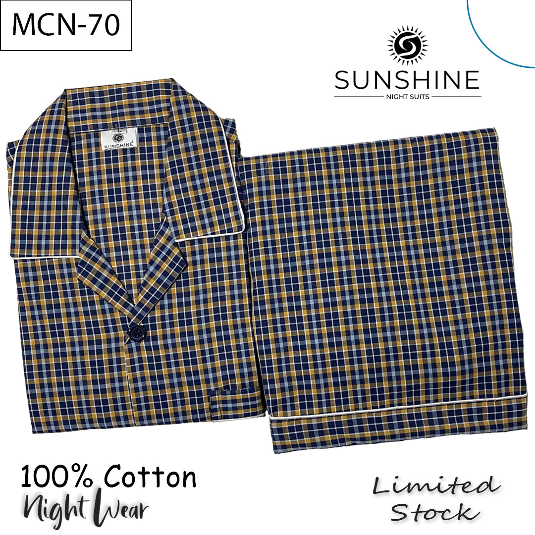 Blue Yellow Plaid Check 100% Cotton Night Suit – MCN-70