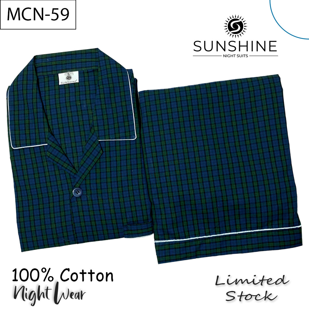 Dark Blue Green Check 100% Cotton Night Suit – MCN-59