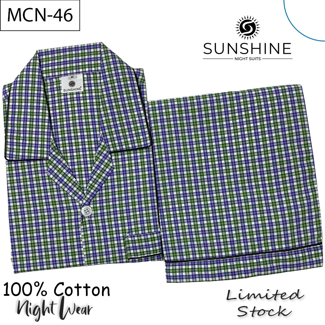 Green Blue Check 100% Cotton Night Suit – MCN-46