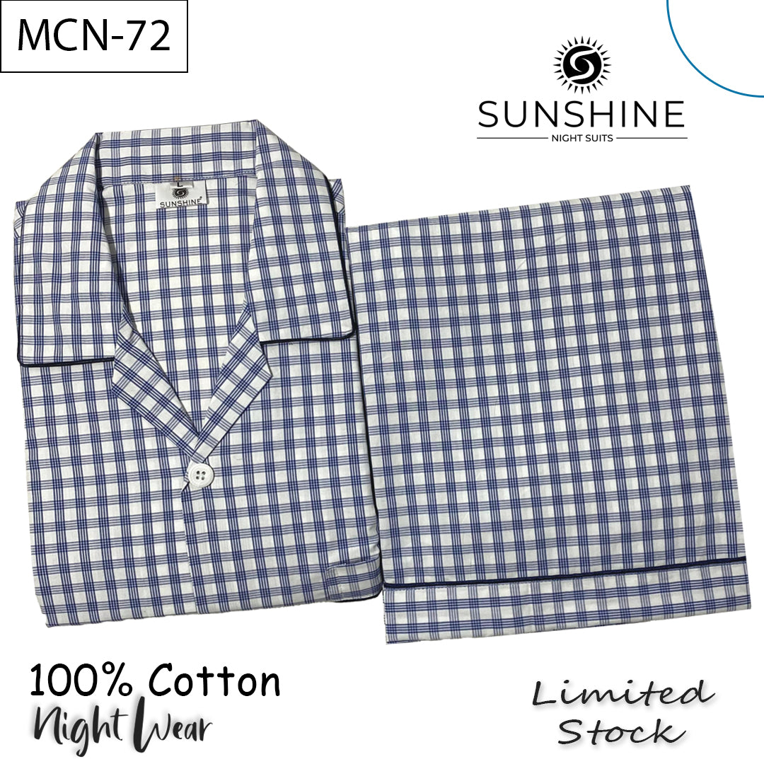 White Blue Check 100% Cotton Night Suit – MCN-72